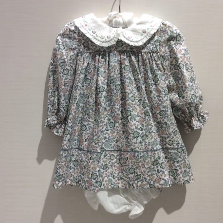 商品詳細 ※在庫について、メールまたは、お電話にて事前にお問合せいただけますとご来店の際、ご用意致します。 グリーン ピンク 総小花柄 白衿白リボン 長袖 ワンピース ブルマ付き SL3942 性別 ベビー・女の子 サイズ 9M・18M・24M