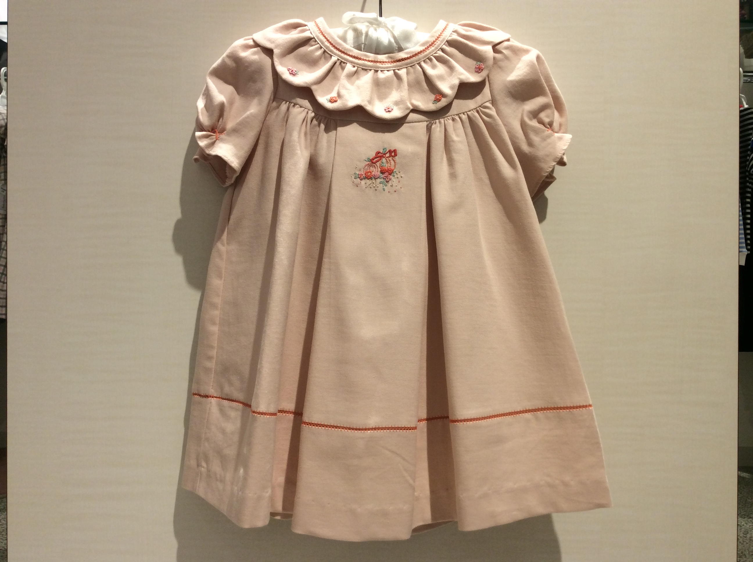 商品詳細 ※在庫について、メールまたは、お電話にて事前にお問合せいただけますとご来店の際、ご用意致します。 ピーチピンク スカラップ衿 半袖 ワンピース SL3940 性別 ベビー・女の子 サイズ 9M・12M・18M・24M