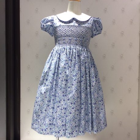 ブルー総花柄 白衿 ワンピース MS340D2-AS25