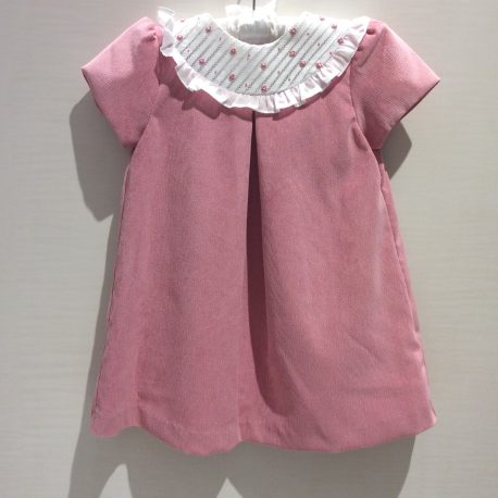 ローズピンク 大きな白衿に花刺繍 ワンピース #8858