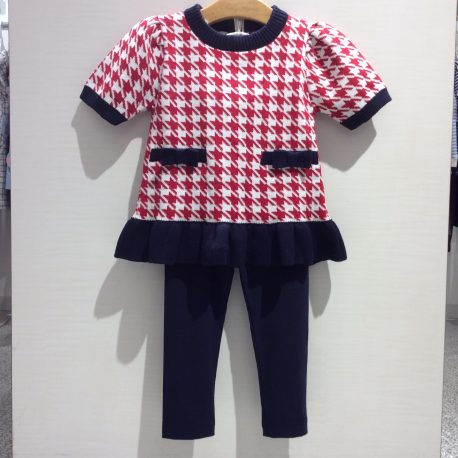赤千鳥格子のニットチュニック +紺レギンス H6144